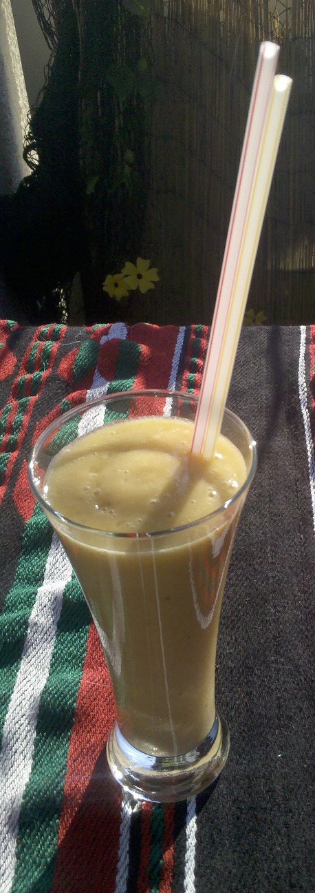 Smoothie aus Bananen, Datteln, Galiamelone und Mango
