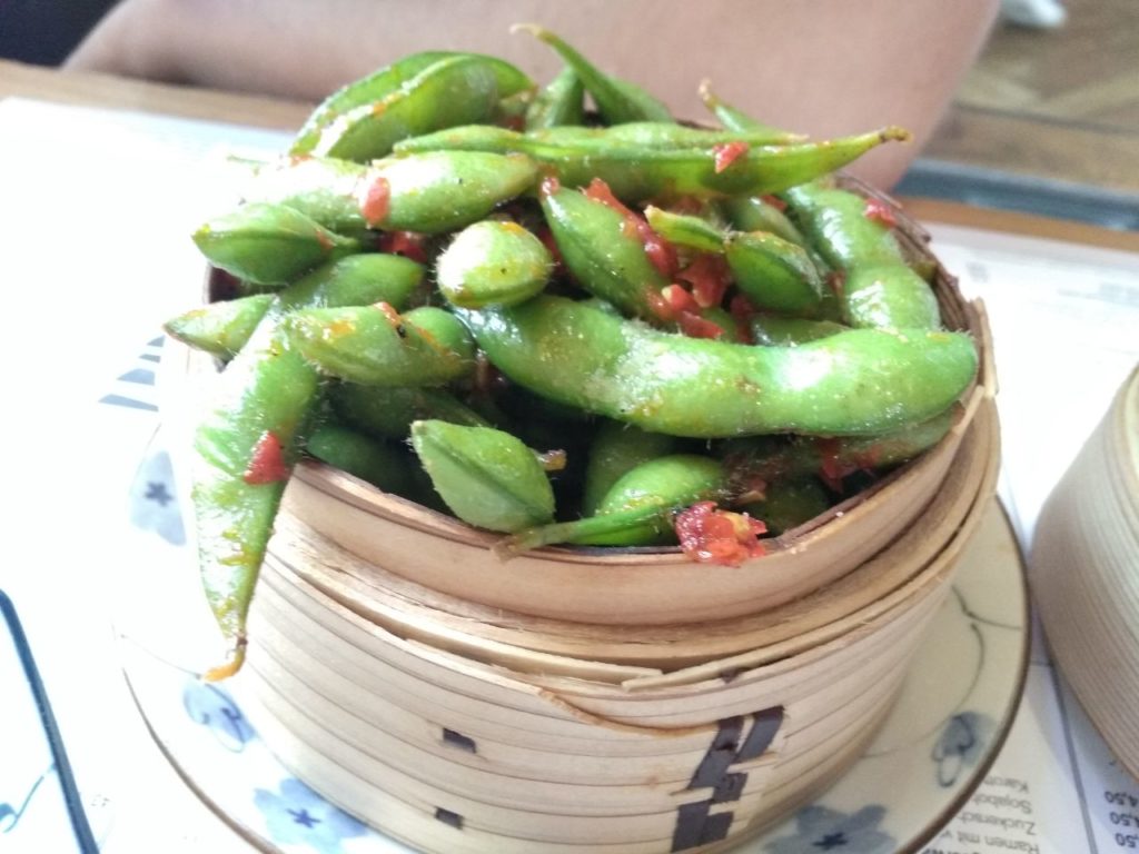 Gyôza, Pinatsu Karê, Edamame, Jippi Jappa und Tempeh (MoschMosch, Heidelberg)