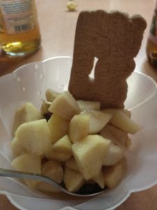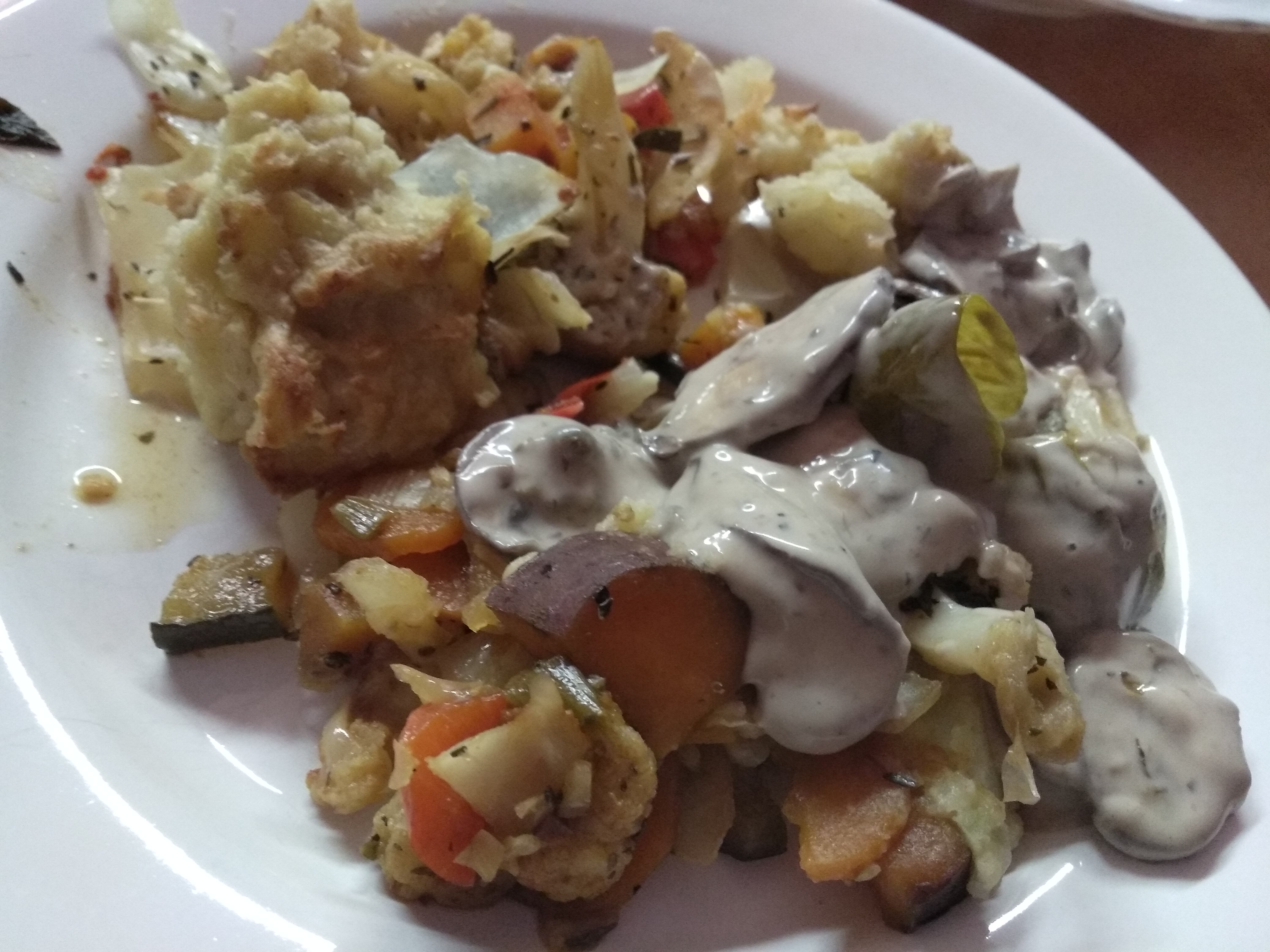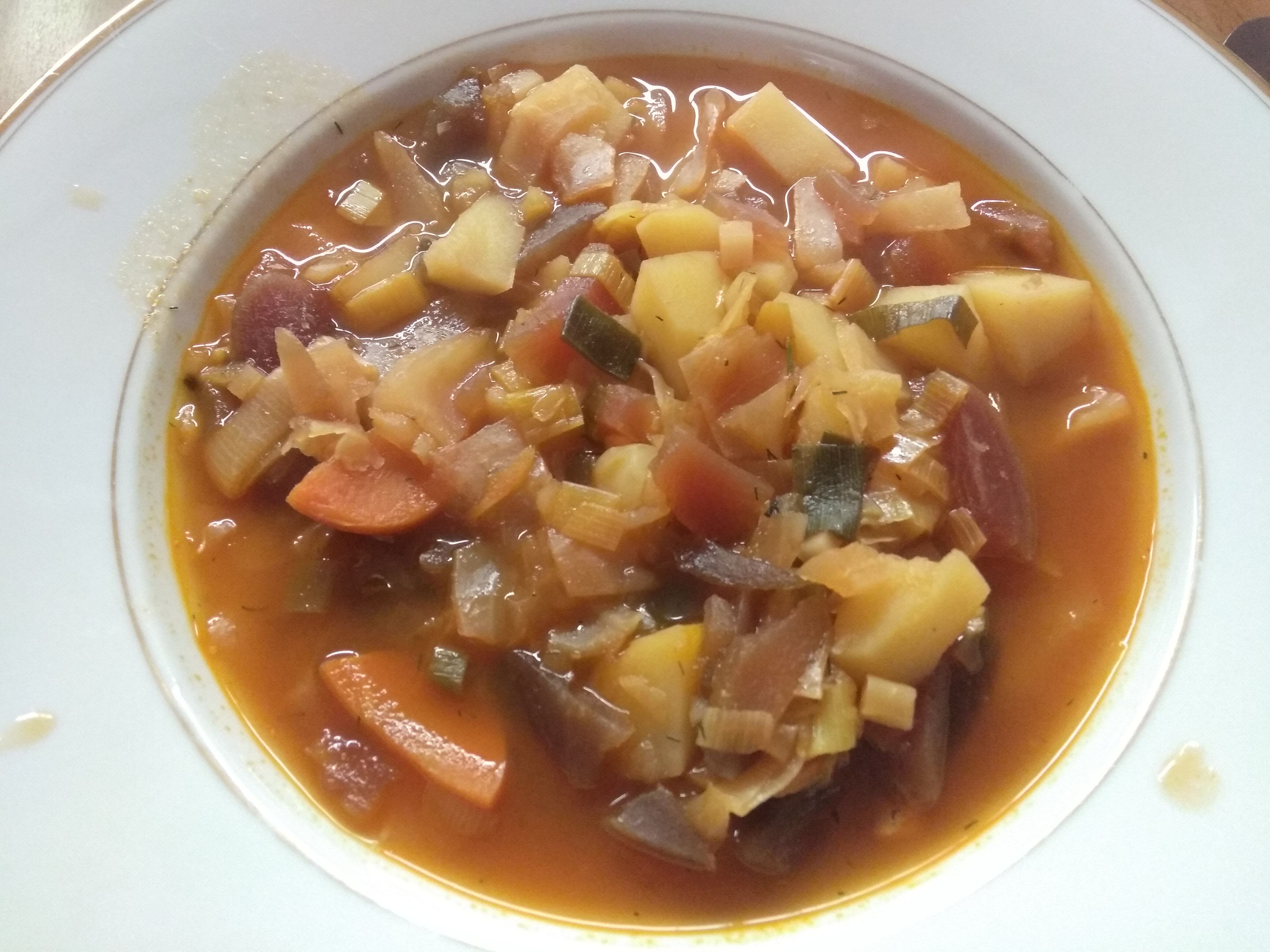 Borschtsch, Gemüse-Pilz-Auflauf, Apfelkompott (Eigenbaukombinat, Halle (Saale))