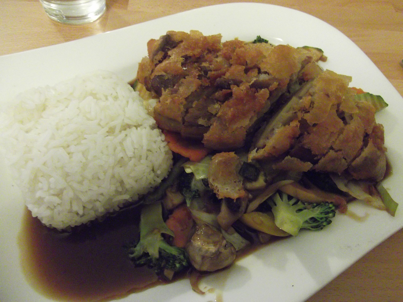 Pekingente, Reis und Gemüse (im Well Being, Köln)